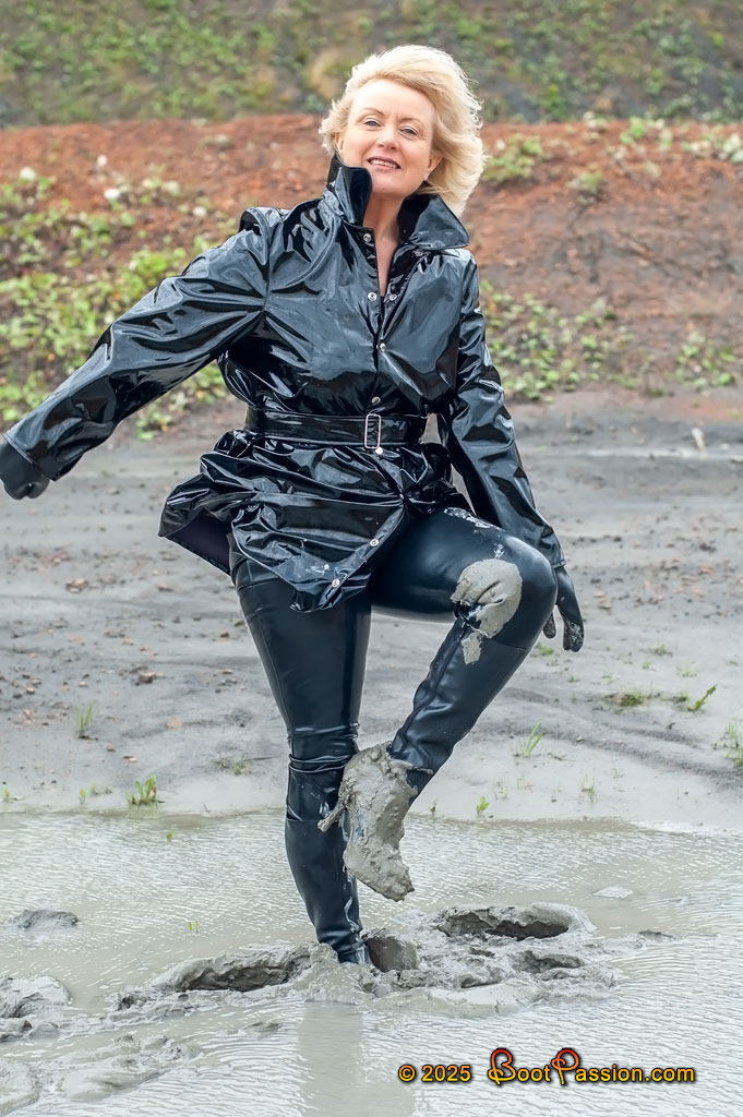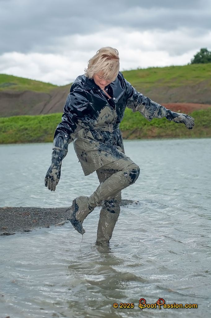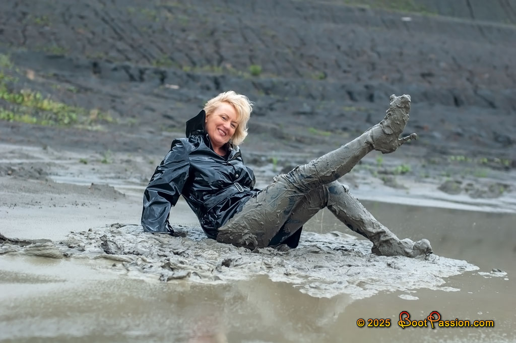 Here I was also wearing latex trousers and Marigold rubber gloves. So I was additionally protected against this deep, soft clay mud. And it was also extremely windy that day, but that didn't stop me from enjoying the atmosphere and even crawling through the mud.