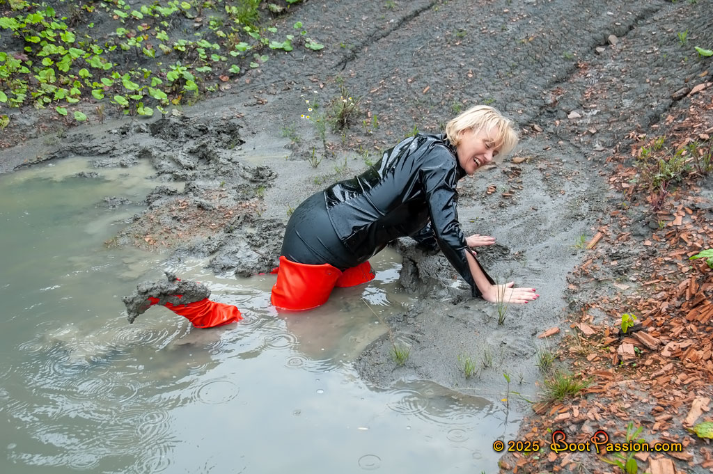 There are even some quite deep little ponds with soft mud around the edges. We found such a nice hidden pond, but my very high Crotchboots have such high, thin heels that I couldn't go in as far as I would have liked because of the rugged bottom. But as you can see, I found the muddy shore much more interesting anyway. Have fun!