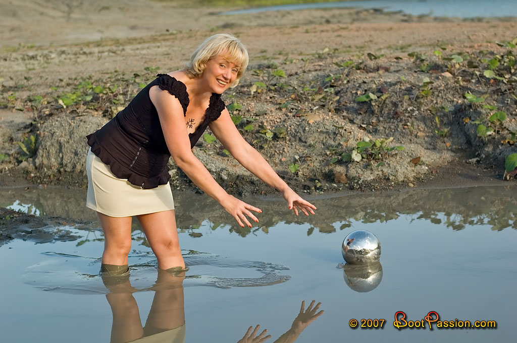 Gallery 132 (Dec 5, 2007). Leon took the liberty of teasing me a bit! First he sent me out in my elegant fashion boots which were absolutely new at that time. During my first steps on exploring the area he hid our silver ball in the middle of a mud pond. I should pull it out, of course! Since I didn't want to spoil the nice boots so soon, I went back to the car and put my new Argyll Wellies on. That was clearly what he had expected. I'm still not sure whether he also anticipated that the Argyll's would be too short for that clay pit!
