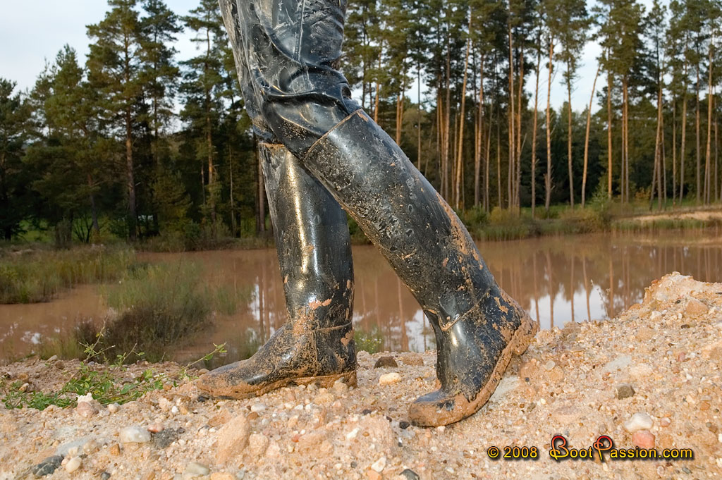 Gallery 185 (Dec 10, 2008). On a sunny day, beginning autumn, we went back to a sand pit you might remember. On our previous visit I was suddenly and unexpectedly trapped in deep mud that appeared like quicksand. So we have been warned! I explored the consistence of the ground carefully before I made any further step. The surface felt rather firm and compact, though, and was obviously dried up during the preceding warm season. But then, I just didn't trust my eyes, the bottom began wobbling. With a bit stomping the whole place around me liquefied and I sunk slowly but surely deeper and deeper. I had to work hard not to be hopelessly stuck again... (44 pictures and 6:10 min video in the members area).
