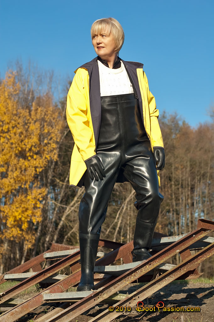 Gallery 295 (Jan 19, 2011). Chest Waders against cold, water and mud. "Friesennerz" (yellow oilskin rain jacket) against wind and rain. Yes, we were well prepared against bad weather when we hit the road this morning. But things never turn out the way you expect. So it became a marvelous fall day. No wind, no rain, and so pleasantly warm that we even came into sweating sometime. Never mind! We experienced a marvelously wet and dirty afternoon without getting dirty myself... Well, except for a couple of mud splashes in the hair...