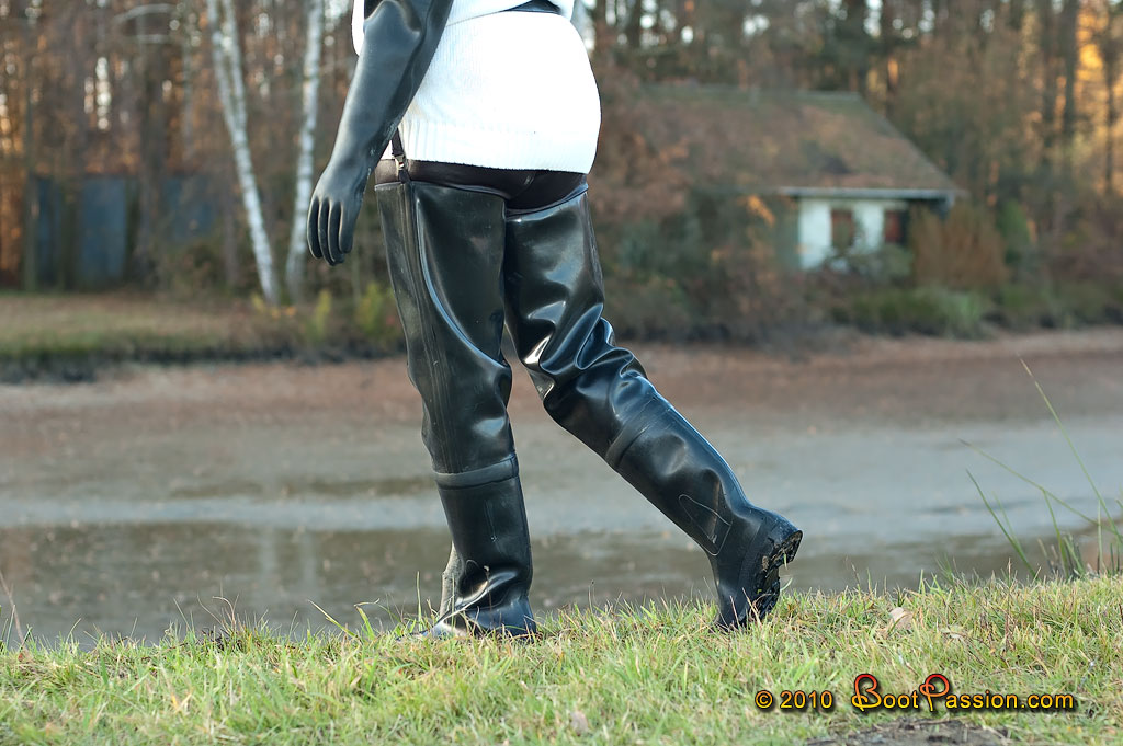 Gallery 304 (Mar 23, 2011). Whew! You'll have to do it for yourself sometime. Wading through deep mud is hard work. Really! Particularly if you wear heavy boots like these rubber waders. Walking with a Stick makes it at least a bit easier. You won't lose balance that soon and you can hold yourself tight if required. And, if it comes quite badly, you are able to pull yourself out of the marsh. Even though I prefer to rely on Leon anyway...