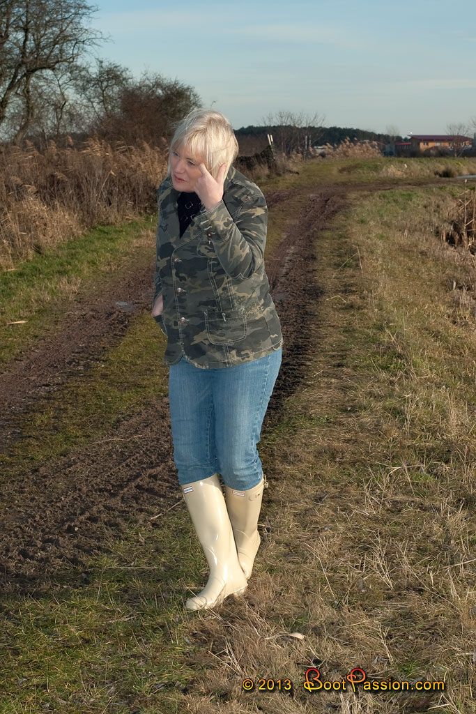 Gallery 397 (Jan 9, 2013). Dark sand gloss — could be the perfect title for this gallery. In reality, it is the color designation of my new Hunter wellies. I like their distinctive color and the wonderful glossy finish. It makes a nice contrast to the dark brown of the dirty ground. This was my first stroll in them. We followed dirt tracks with lots of mud and waterlogged tractor furrows. And finally I even crossed a flooded meadow even without getting my feet wet. Enjoy! (48 pictures and 6:13 min video in the members area).