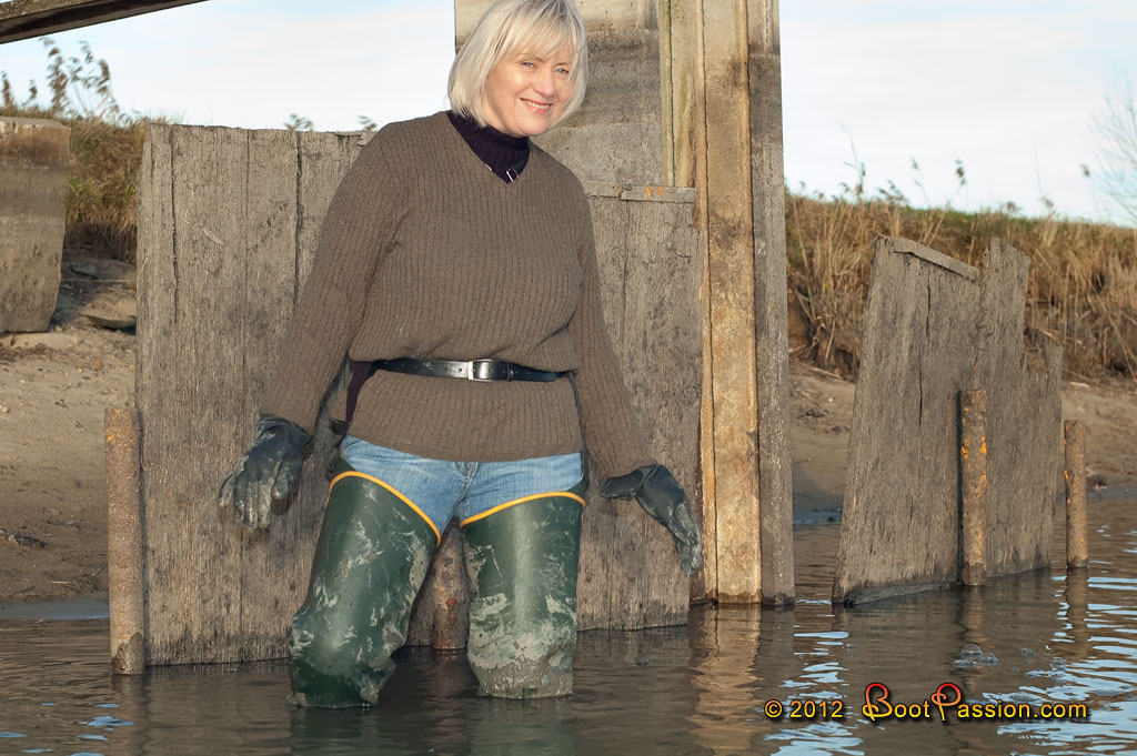 Gallery 398 (Jan 16, 2013). Just during the heaviest struggle through the stickiest mud the fish farmer stopped by in his van. To be honest, we were not very comfortable in this situation. But his first reaction was an astonished glance to my waders — followed by an admiring: "Great LeChameau boots!" He then spontaneously invited me to follow him into the deeper water where he had something to work. Wow, what an unexpected but entirely uncomplicated and nice encounter. (44 pictures and 6:14 min video in the members area).