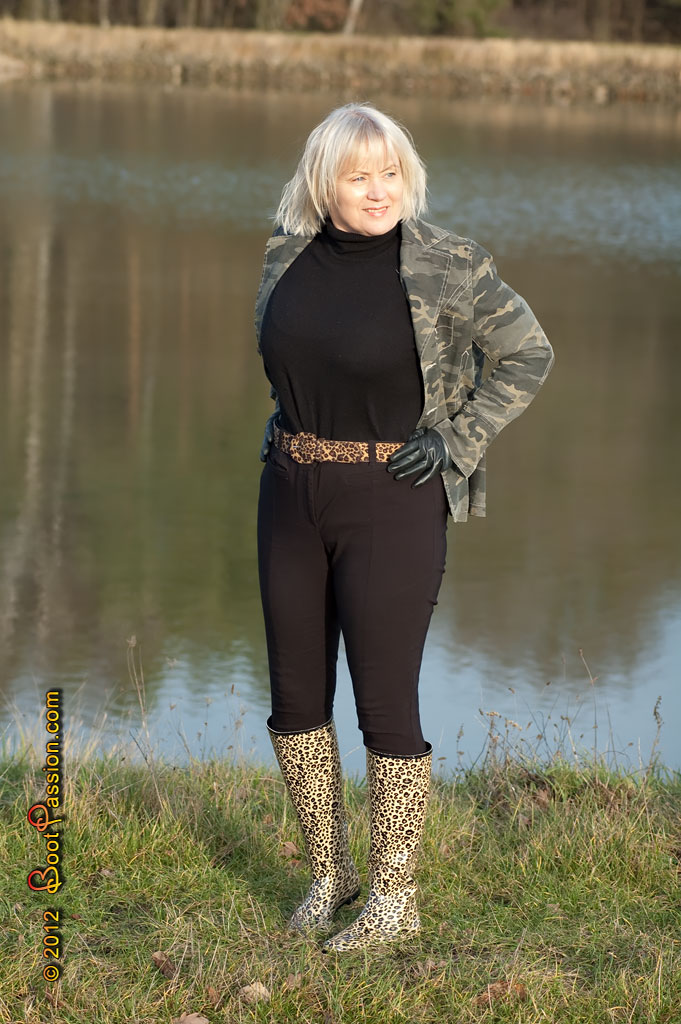 Gallery 401 (Feb 6, 2013). Either one treats a dull winter atmosphere by adding a little color — or one adapts oneself to the surroundings. This time we opted for the latter. As you can see, my camouflage jacket and Leo boots are nearly lost against the monotonous backdrop.