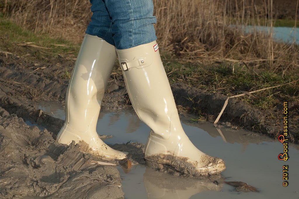 Gallery 403 (Feb 20, 2013). Some might regard these glossy Hunter Wellies as a fashionable accessory rather than a functional piece of footwear. I can understand that. I also like it to wear them for elegant, say for a stroll through the city. But I do not belong to those people who would never wear them in dirty environments (I'm sure I don't need to stress that particularly). This time I wore them during a stroll across dirt tracks. In contrast to the first part of this walk I'm now under way on the muddy, squishy paths. Enjoy! (44 pictures and 6:15 min video in the members area).