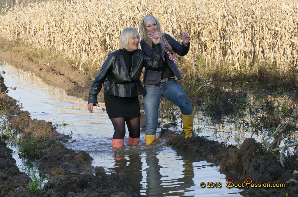 Gallery 454 (Feb 12, 2014). Playing and romping around in wellies has always been huge fun for children. I'm even sure that, for many of us, it triggers a vast host of wonderful childhood memories. Maybe it was this kind of memories why we got into a really playful mood that day. Anyhow, sometime we found ourselves romping over the muddy field and "playing tag". As you know, that's the children's game which often starts with the invitation "catch me if you can". Good that our parents haven't noticed it... (44 pictures and 6:14 min video in the members area).