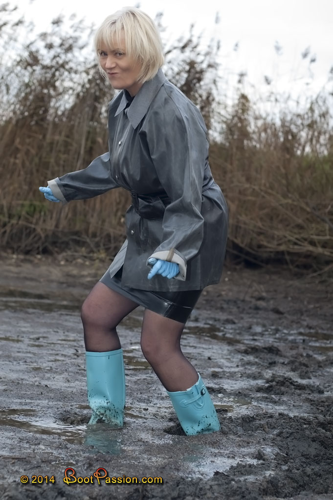 Gallery 497 (Dec 10, 2014). A drained pond with a small footbridge, leading across a muddy estuary, attracted our attention and curiosity on that day. Even if we know this region like the back of our hand, we still hadn't noticed this nice, promising corner which obviously was covered in the floods before. Well, that's exactly what makes our pond area so exciting: when the ponds are flooded and drained again and again, permanently new, interesting spots arise. And this one looked so wild, messy and marshy that we simply couldn't resist to pay it a visit. It has been worthwhile. Never seen that my turquoise wellies appeared so bright in the mud. (48 pictures and 6:14 min video in the members area).