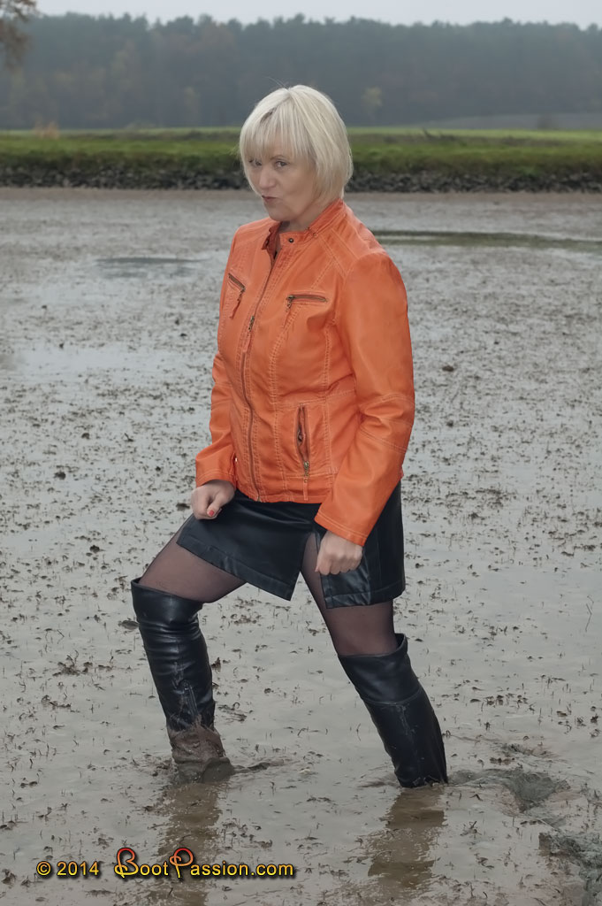 But all we found on its rear was a grill with kettle for an open campfire. Actually nothing that could be of use for our passion. And for a barbecue it was definitely too cold. But a nice pond was just across from here. So we decided to celebrate our own "barbecue" in the mud...