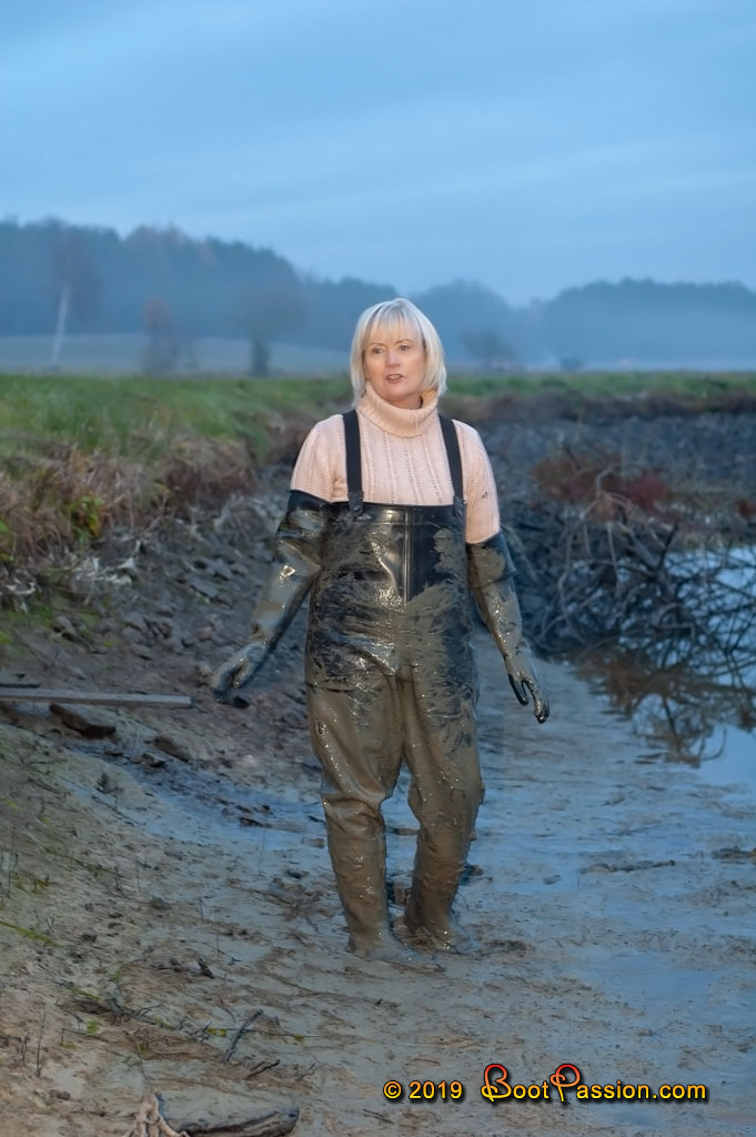 Gallery 758 (Dec 11, 2019). It's been a pretty awkward, uncomfortable day. Well, that's not too unusual in autumn and as we have said before, this mood is just perfect for our kind of adventures. Though you need the right outfit. I decided for a warm sweater and heavy duty chest waders. At first we didn't notice that it was getting foggier (you can see it on the pictures). Soon we were surrounded by fog, which created a slightly scary atmosphere. But together and so well protected we enjoyed this extraordinary atmosphere even more intensively. Maybe our pictures convey a little bit of it. (36 pictures and 6:14 min video in the members area).