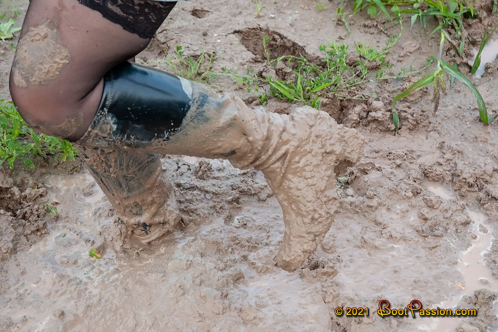 Gallery 854 (Oct 13, 2021). We happened to pass a promising construction site and of course didn't miss the opportunity. Fortunately, I had knee-high fashion boots in the trunk, which seemed very suitable for this unfamiliar terrain. They have a fairly wide heel, which is obviously a benefit on rough terrain. In addition, they are exceptionally tall (for knee boots), so I would be well equipped in case of unexpected deep spots. As you can see, I couldn't have chosen better for this spontaneous adventure over hill and dale and through water and mud. Enjoy!