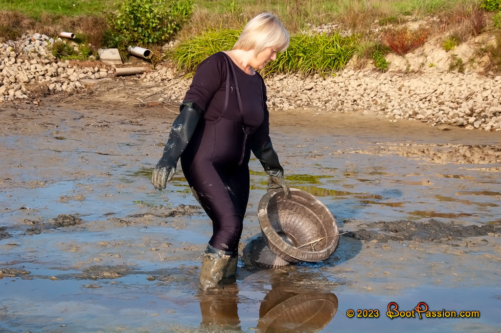 This was early autumn, so we also found one of the first drained ponds of the year. Nice, soft mud and surprisingly even a boggy flower bucket in the middle. You can imagine that I wanted to get it out of the mire, I was suitably prepared after all.